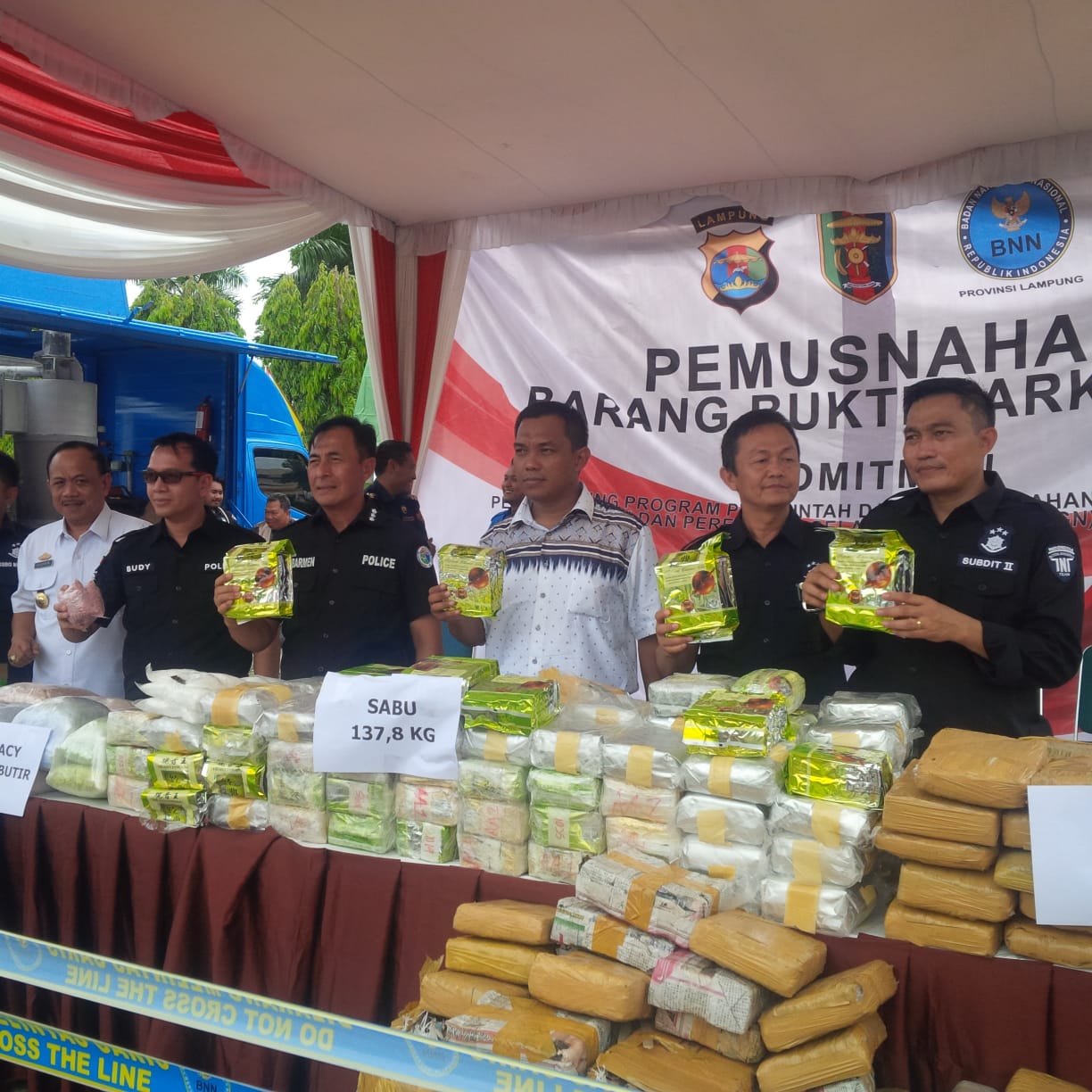 Kapolda Lampung, Irjen Pol. Purwadi Arianto melalui Direktur Reserse Narkoba Polda Lampung, Kombes Pol. Shobarmen membenarkan, Direktorat Reserse Narkoba Polda Lampung dan Jajaran, bersama BNNP Lampung, melaksanakan giat pemusnahan barang bukti narkotika, sebagai bentuk komitment mendukung program pemerintah dalam upaya pencegahan, pemberantasan, penyalahgunaan narkotika (P4GN) di Provinsi Lampung.