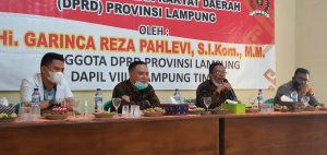 LAMPUNG TIMUR (PeNa) – Anggota DPRD Provinsi Lampung Dapil Lampung Timur Garinca Reza Pahlevi kembali turun ke konstituen dalam rangka melaksanakan Sosialisasi Peraturan Daerah nomor 3 tahun 2020 tentang adaptasi kebiasaan baru dalam Pencegahan dan Pengendalian Corona Virus Disease 2019 atau COVID-19 di Desa Wana Kecamatan Melintang Lampung Timur, Minggu (14/2).
