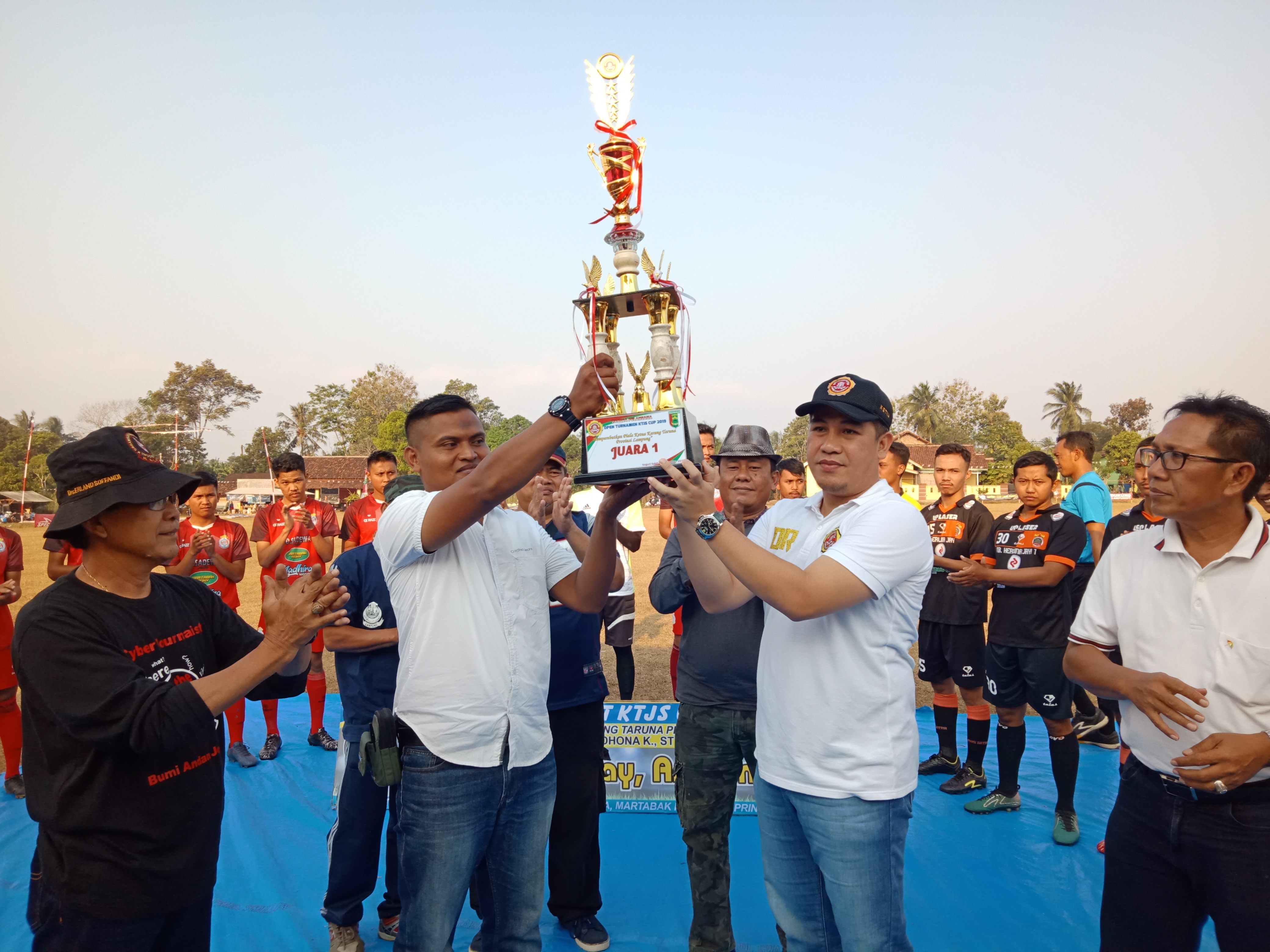 PESAWARAN-(PeNa), Open Tournament KTJS Cup 2019 memperebutkan piala Ketua Karang Taruna Provinsi Lampung Dendi Ramadhona digelar di Lapangan Silahudin Desa Negeri Sakti Kecamatan Gedong Tataan, Ahad (08/09/2019).