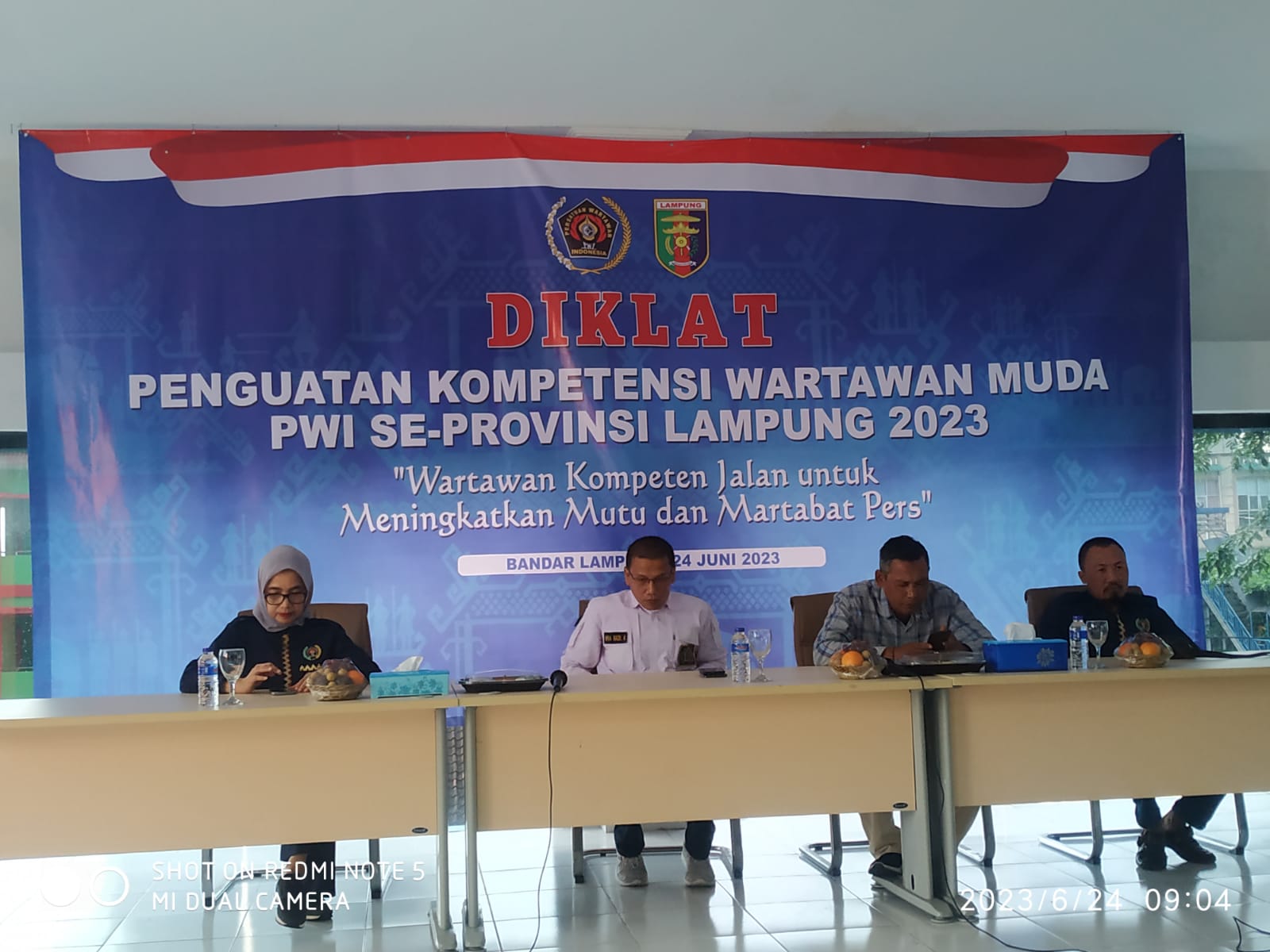 BANDARLAMPUNG- (PeNa), Persatuan Wartawan Indonesia (PWI) Lampung gelar pendidikan dan latihan (Diklat) penguatan organisasi untuk calon anggota muda. Dan, sedikitnya 84 peserta dari daerah dan kota mengikuti kegiatan tersebut di Aula Gedung PWI Lampung di Bandarlampung, Sabtu (24/06/2023).