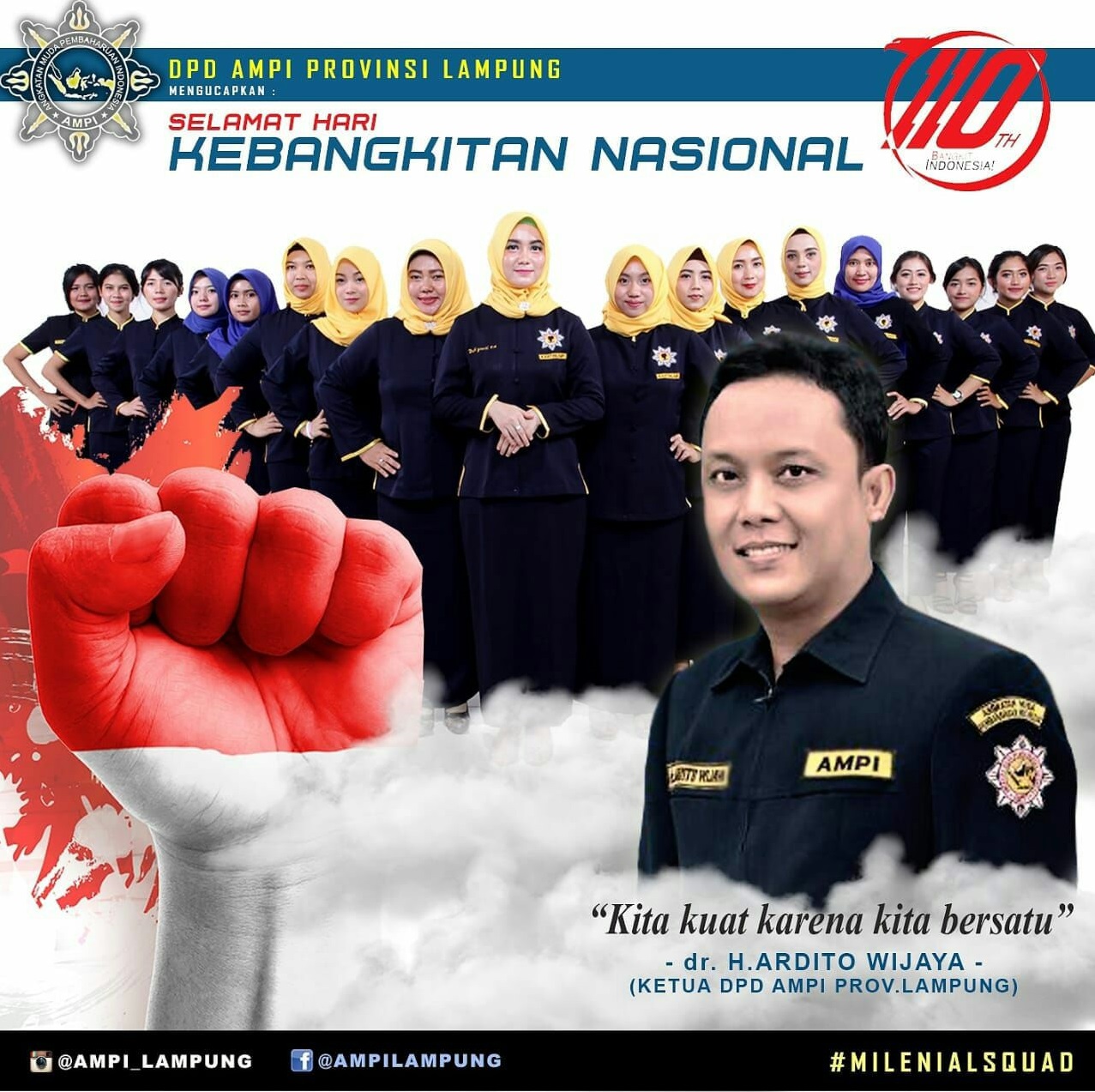 Hal itu diungkapkan Ketua DPD AMPI Lampung, Ardito Wijaya, saat menggelar program Millennials Nationalism dengan tema Generasi Muda Menyambut Indonesia 40, dalam rangka peringati Kebangkitan Nasional ke-110, pada Senin (21/5).