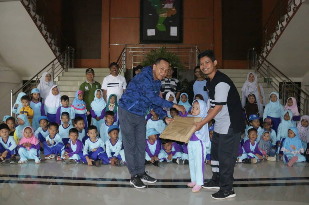 PRINGSEWU-(PeNa), Anak-anak berusia dini dari PAUD Latifah 3 Sidoharjo Pringsewu melakukan kunjungan ke Kantor Bupati Pringsewu, Jumat (21/02/20).