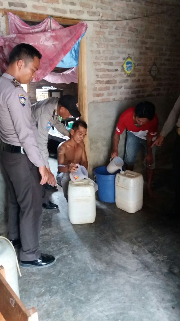 PESAWARAN-(PeNa), Antisipasi peredaran minuman keras oplosan, Polsek Kedondong amankan 50 liter minuman keras tradisional jenis tuak dari rumah Suwono warga Gunung Sari Kecamatan Way Khilau, Sabtu (28/4).