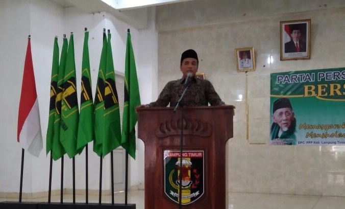 BANDARLAMPUNG,- Ketua Fraksi PPP MPR RI, Moh Arwani Thomafi menggelar sosialisasi empat pilar Kebangsaan bersama 150 kader partai berlambang ka’bah dan para Kya’i di Islamic center, Sukadana, Lampung Timur.
