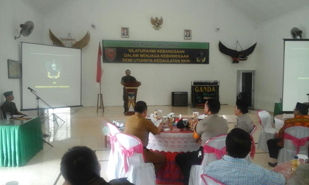 TANGGAMUS (PeNa)-Komando Distrik Militer (Kodim) 0424 Tanggamus, menggelar silaturahmi kebangsaan dengan tokoh lintas agama Kabupaten Tanggamus serta Pringsewu, di Aula Jenderal Sudirman Makodim setempat.