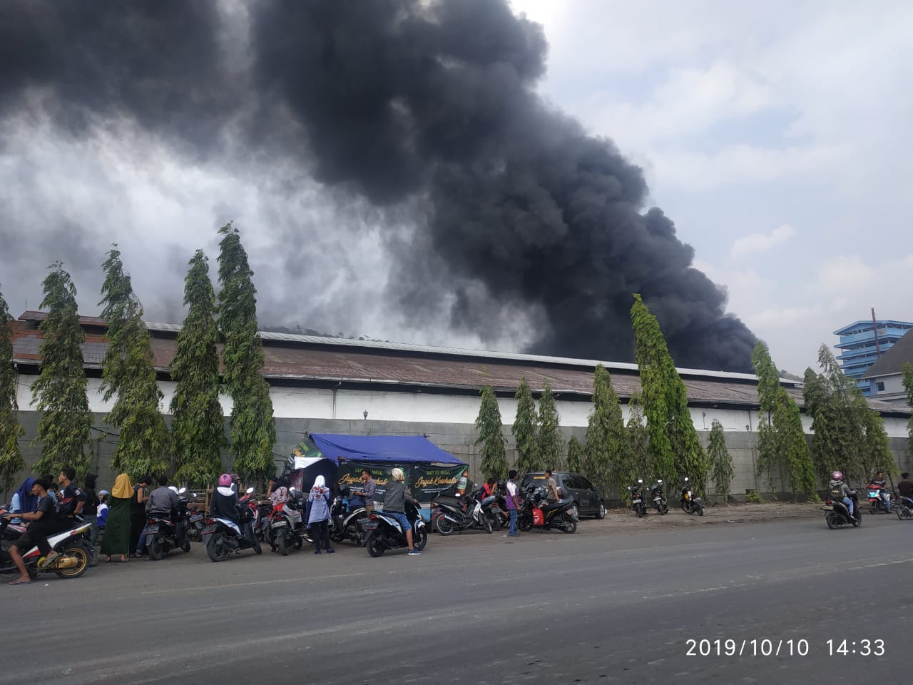 BANDARLAMPUNG-(PeNa), Kebakaran hebat, api melalap Kilang minyak kelapa sawit di Gudang milik PT Sungai Budi Grup CV Bumi Waras, di Kelurahan Way Lunik, Bumi Waras, Bandarlampung, Kamis (10/10/2019) sore.