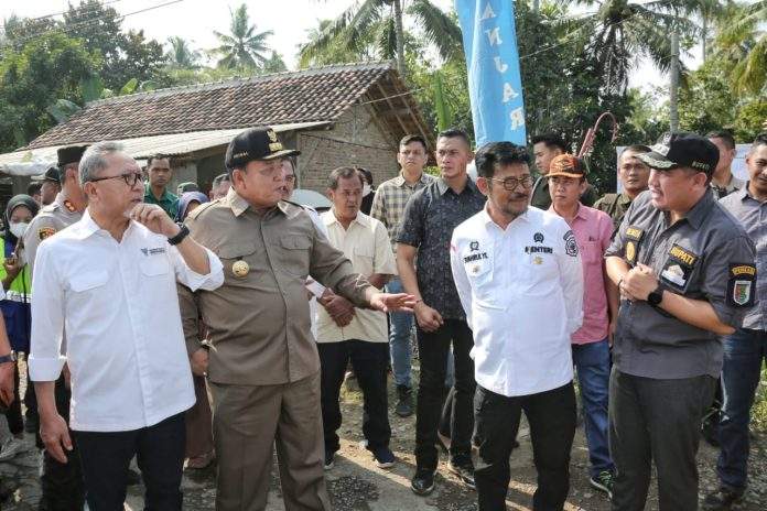 PESAWARAN – Gubernur Lampung Arinal Djunaidi meninjau kemajuan pengerjaan rehabilitasi Jalan Provinsi di Ruas Gedong Tataan-Kedondong, Kabupaten Pesawaran, yang masuk dalam prioritas pembangunan Pemerintah Provinsi Lampung tahun 2023, Jum’at (2/6/2023).