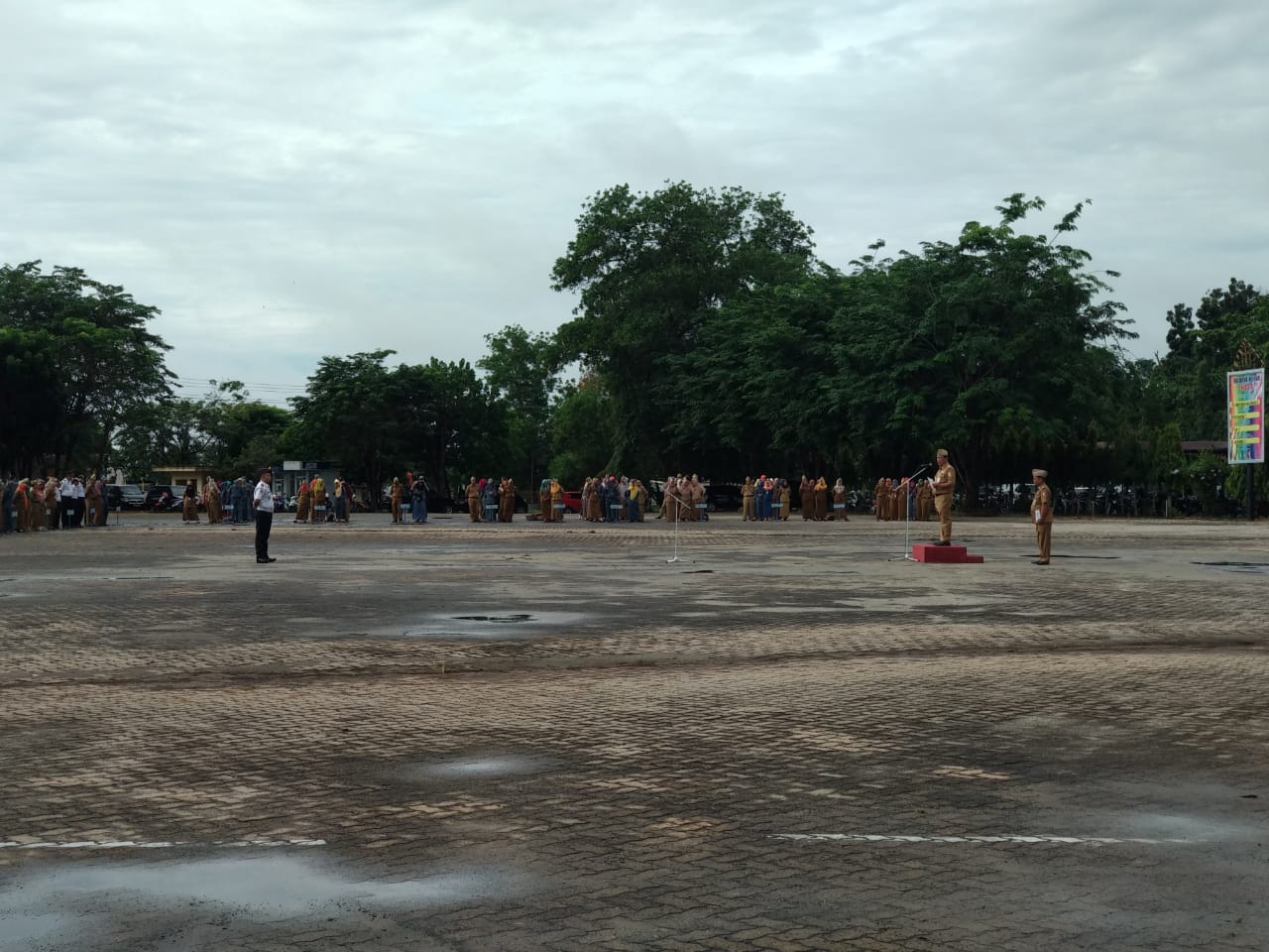 Kegiatan yang dilaksanakan di Lapangan Pemda Tulang Bawang tersebut, Bupati Tulang Bawang Winarti tidak hadir dan diwakilkan oleh Sekda Anthoni yang menjadi inspektur upacara.