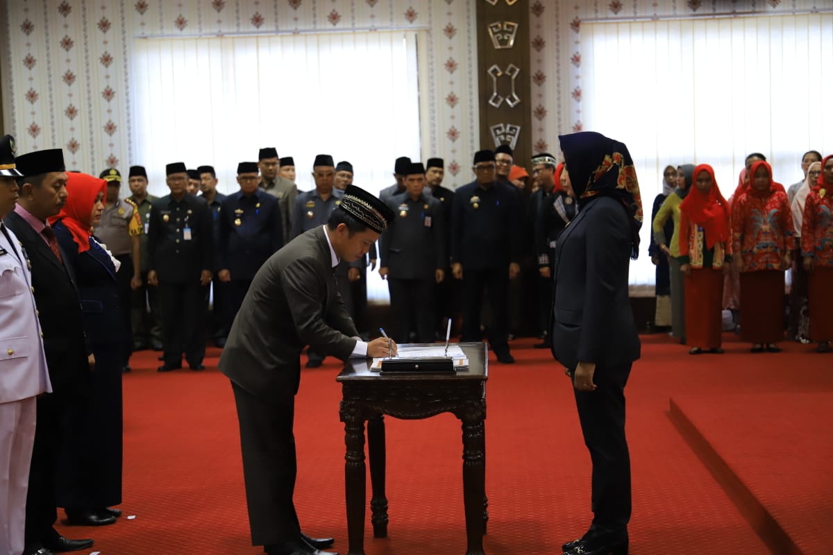“Untuk itu, dalam kesempatan yang berbahagia ini, saya berpesan kepada seluruh Pejabat yang dilantik agar segera melaksanakan tugas pokok dan fungsi (tupoksi) dengan sebaik-baiknya, serta menjunjung tinggi disiplin dan profesionalisme,” ujarnya.