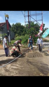 PESAWARAN-(PeNa), Bintara pembinaan dan keamanan ketertiban masyarakat (Babhinkamtibmas) Polsek Kedondong lakukan gotong royong bersama masyarakat membenahi jalan dan
