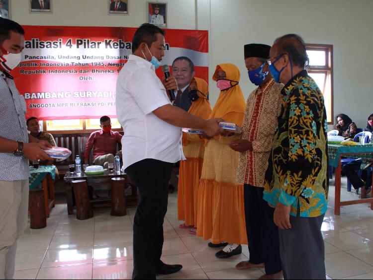 BANDARLAMPUNG (PeNa) – Anggota DPR RI Fraksi PDI Perjuangan, Bambang Suryadi menggelar sosialisasi empat pilar kebangsaan bersama para tokoh masyarakat di rumah aspirasi, Bangunrejo, Lampung Tengah, Rabu (18/11/2020).