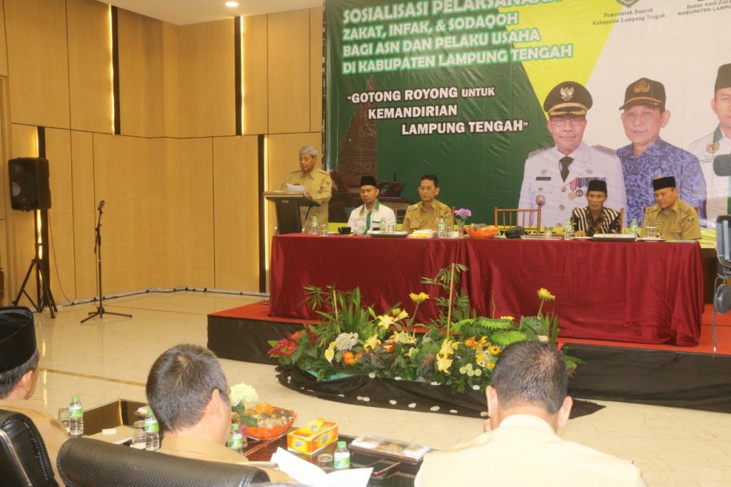 Dalam sambutan tersebut Bupati Lampung Tengah Loekman Djoyosoemarto sekaligus membuka secara resmi sosialisasi Pelaksanaan Zakat,Infak, sodaqoh bagi ASN dan pelaku usaha di Kabupaten Lampung Tengah. ADV