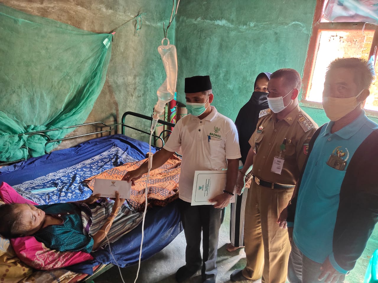 P E S A W A R A N – (PeNa), Badan Amil Zakat Nasional (BAZNAS) Kabupaten Pesawaran menyantuni Painem (46) warga Dusun Banjarharjo Desa Gayau Kecamatan Padang Cermin yang terkena tumor ganas, Selasa(04/05/2021).