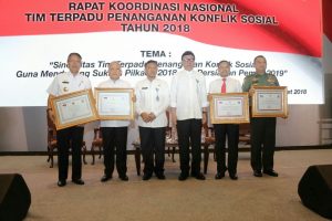 Menteri Dalam Negeri Cahyo Kumolo mengapresiasi atas diraihnya penghargaan terbaik penanganan konflik sosial yang diraih provinsi Lampung, DI Yogyakarta dan Jawa Timur. Ini tentunya tidak akan terwujud tanpa adanya komando yang baik dari kepala daerah yang berkoordinasi dengan Forkopimda, penghargaan diberikan karena koordinasi yang baik dengan pemerintah pusat baik dalam pelaporan maupun upaya cepat penanganan penyelesaian masalah.