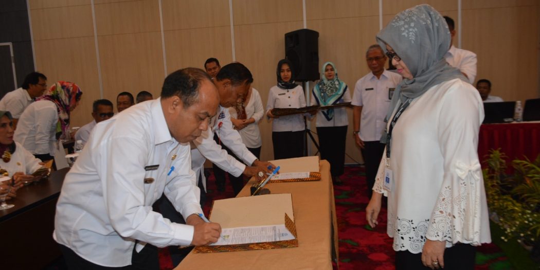 Selanjutnya, pada kesempatan yang sama, dllaksanakan Penandatanganan Perjanjian Kerjasama (PK) yang dilakukan oleh Kepala Perwakilan BKKBN Provlnsl Lampung dengan Kepala Dinas OPD KB Kabupaten/Kota se Provinsi Lampung, sebagai tindak lanjut perjanjian kerjasama dari BKKBN pusat ke BKKBN Provinsi se Indonesla, dalam rangka kesiapan penggarapan program KKBPK di Provinsi Lampung.