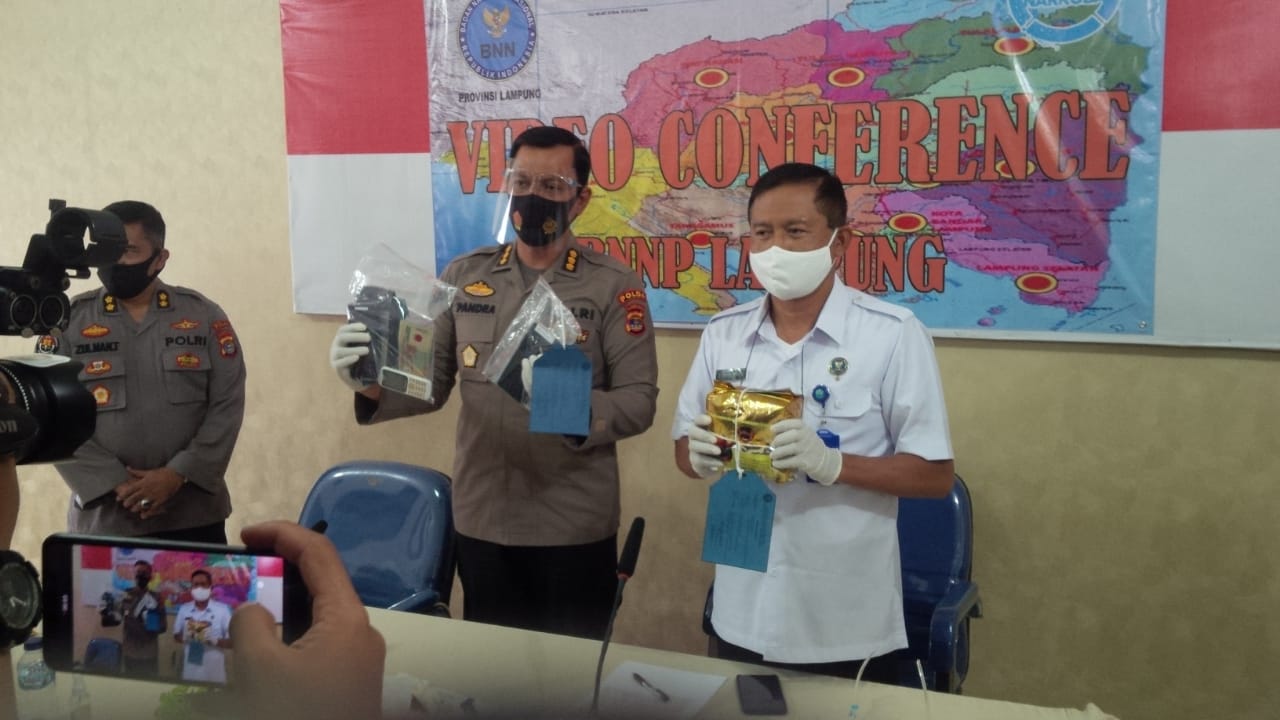 “Dua diantaranya berinisial, AK (39) dan AY (47) keduanya warga Lampung, ditetapkan sebagai tersangka. Sedangkan inisial H belum, karena kita masih punya waktu tiga hari untuk melakukan pemeriksaan,” kata I Wayan Sukawiyana, saat ekspose di Kantor BNNP Lampung.