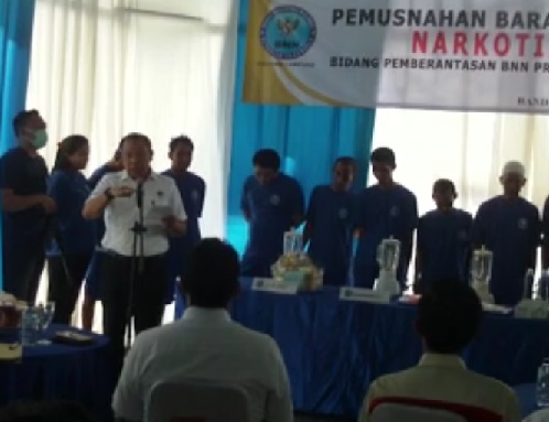 Dilokasi, acara pemusnahan barang bukti narkoba dihadiri oleh Wakil Direktur Reserse Narkoba Polda Lampung, pihak Kejaksaan, pihak Pengadilan, Ormas dan LBH. Barang bukti sabu-sabu dan ekstacy dimusnahkan dengan cara diblender lalu dibuang ke septic tank. PeNa-obin.
