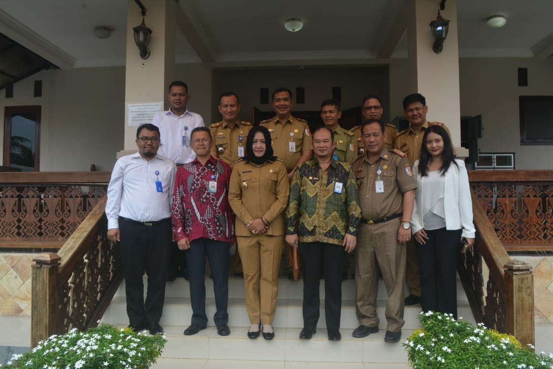 TULANG BAWANG (PeNa)- Bupati Tulangbawang, Winarti, menyambut rombongan Kepala Badan Pengawasan Keuangan dan Pembangunan (BPKP) Perwakilan Provinsi Lampung Jhon Nazaputra beserta Tim Satuan Tugas Sistem Pengendalian Intern Pemerintah (SPIP) di Kabupaten Tulangbawang dalam rangka melakukan sosialisasi pencegahan tindak pidana korupsi, Selasa (18/9/2018).
