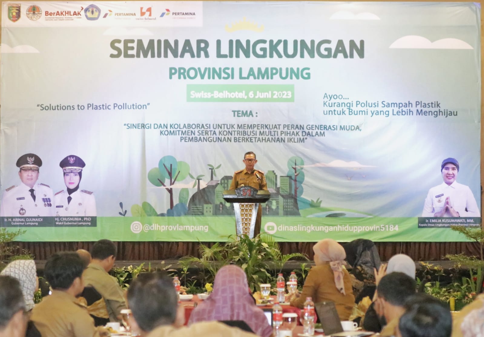 BANDARLAMPUNG – Gubernur Lampung Arinal Djunaidi diwakili Sekretaris Daerah Provinsi Lampung Fahrizal Darminto membuka acara Seminar Lingkungan Provinsi Lampung bertempat di Swiss-Belhotel Lampung, Selasa (06/06/2023).