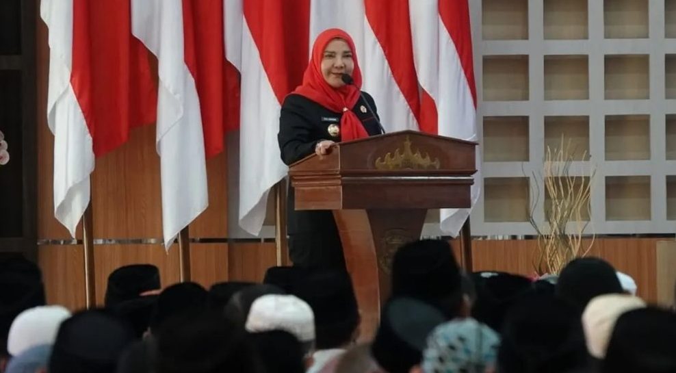BANDAR LAMPUNG – Wali Kota Bandar Lampung Eva Dwiana membuka kegiatan manasik haji umroh di aula gedung Semergo sekretariat Pemkot Bandar Lampung, Senin (20/11/2023).