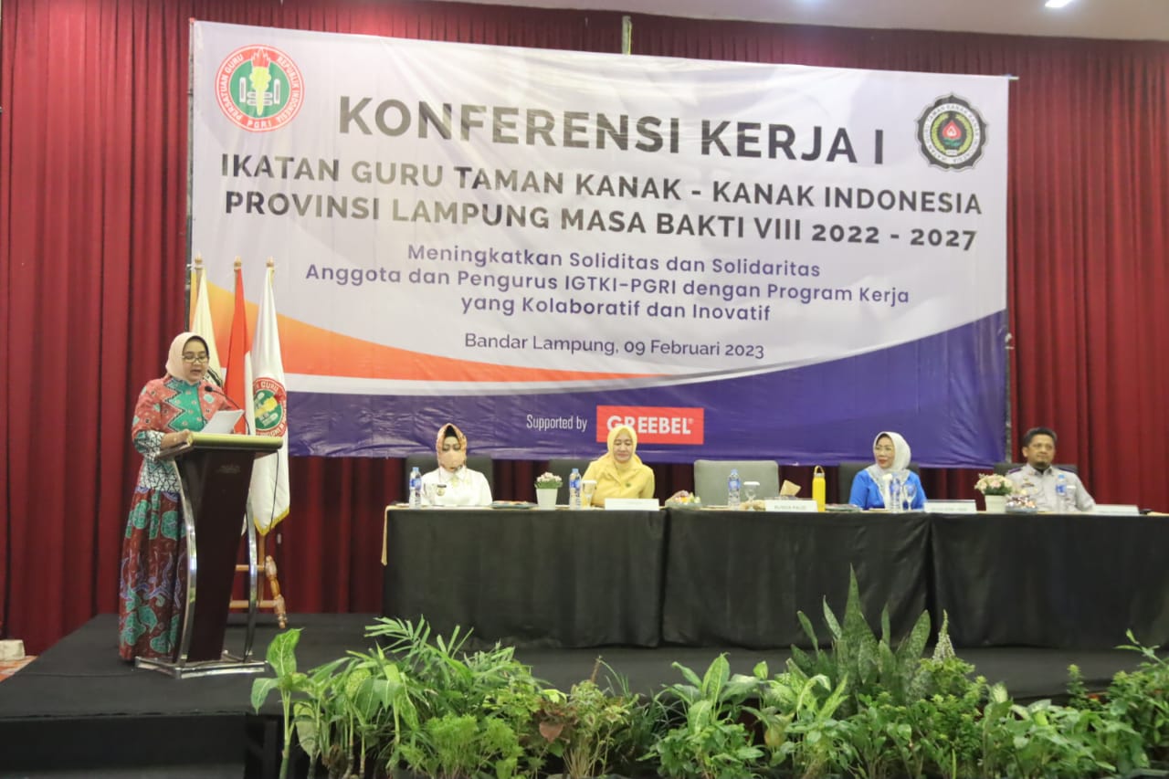 BANDARLAMPUNG – Bunda PAUD Provinsi Lampung, Riana Sari Arinal membuka acara Konferensi Kerja Provinsi (Konkerprov) Ikatan Guru Taman Kanak-Kanak Indonesia (IGTKI)-PGRI masa bakti 2022-2027, di Hotel Horison, Kamis (9/2/2023).