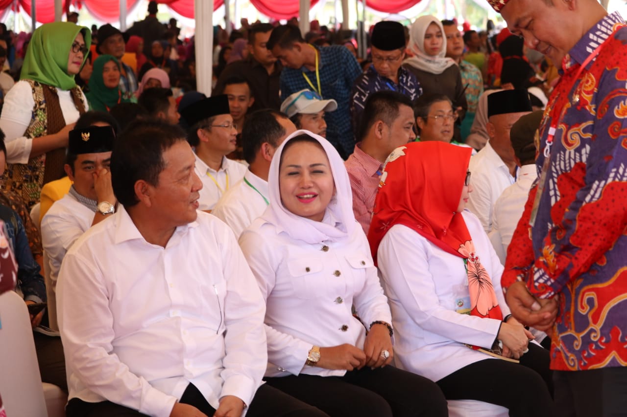 TULANG BAWANG (PeNa)-Bupati Tulangbawang Winarti, menghadiri kegiatan Temu Petani Lampung, bersama Presiden Republik Indonesia Ir. H. Joko Widodo (Jokowi), yang dilaksanakan di Kabupaten Pringsewu (24/11/2018).