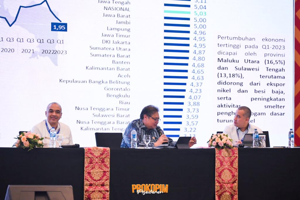 Sementara Menteri Koordinator Bidang Perekonomian Republik Indonesia Dr. (H.C) Ir. Airlangga Hartato, M.B.A, M.M.T. IPU memaparkan materi terkait Strategi Pengendalian Inflasi Nasional dan Daerah. Ia menjelaskan Ketidaksiapan Global Masih menjadi Tantangan Ekonomi ke Depan , Faktor eksternal perlu diwaspadai dan diantisipasi dampaknya kepada Indonesia, baik untuk jangka pendek maupun jangka panjang, termasuk dampak dari perubahan iklim terhadap ketahanan pangan di Indonesia.