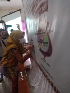 TANGGAMUS (PeNa) – Bupati Tanggamus Hj. Dewi Handajani, menghadiri kegiatan Pencanangan Zona Integritas Menuju WBK dan WBBM dilingkungan Polres Tanggamus, yang ditempatkan di Aula Parama Satwika Polres Tanggamus, Kamis (25/02/).
