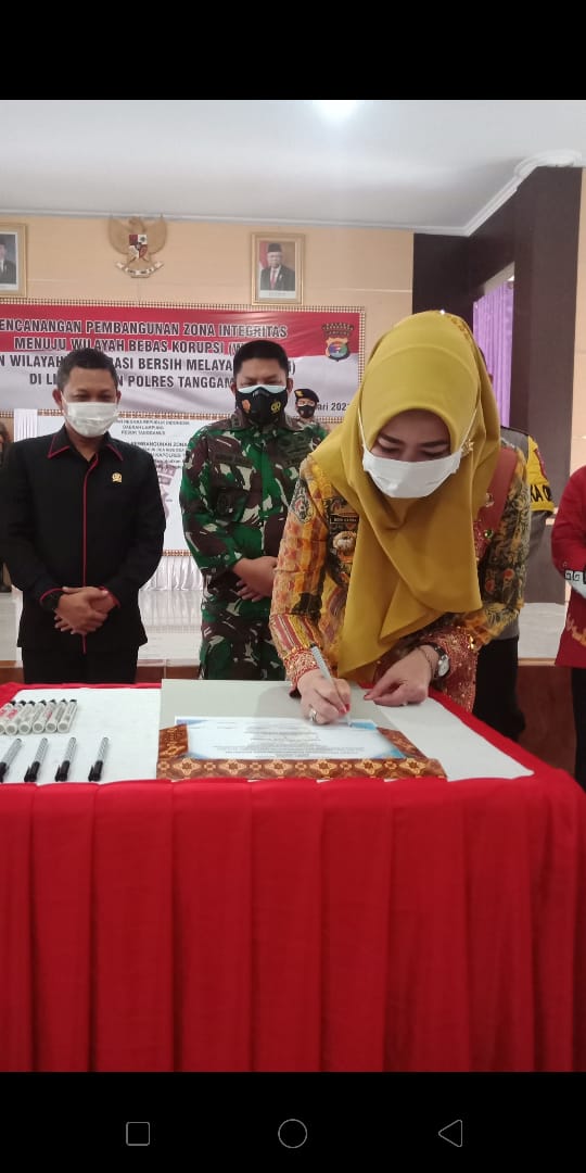 Bupati Hj Dewi Handajani, dalam sambutannya menyampaikan bahwa atas nama pribadi dan atas nama Pemerintah Kabupaten Tanggamus mengapresiasi kegiatan tersebut, yang merupakan suatu bentuk itikad baik daripada jajaran Polres Tanggamus yaitu Pencanangan Pembangunan Zona Integritas Menuju Wilayah Bebas Korupsi (WBK) dan juga Wilayah Birokrasi Bersih dan Melayani (WBBM).
