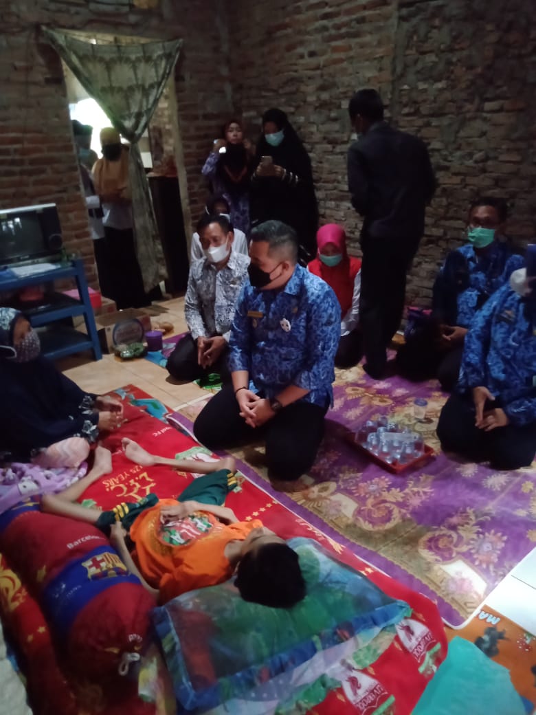 PESAWARAN-(PeNa), Bupati Pesawaran Dendi Ramadhona mendatangi Aldi Saputra (14) warga Desa Bernung Kecamatan Gedong Tataan yang lumpuh akibat menderita penyakit langka, Rabu (17/02/2021).