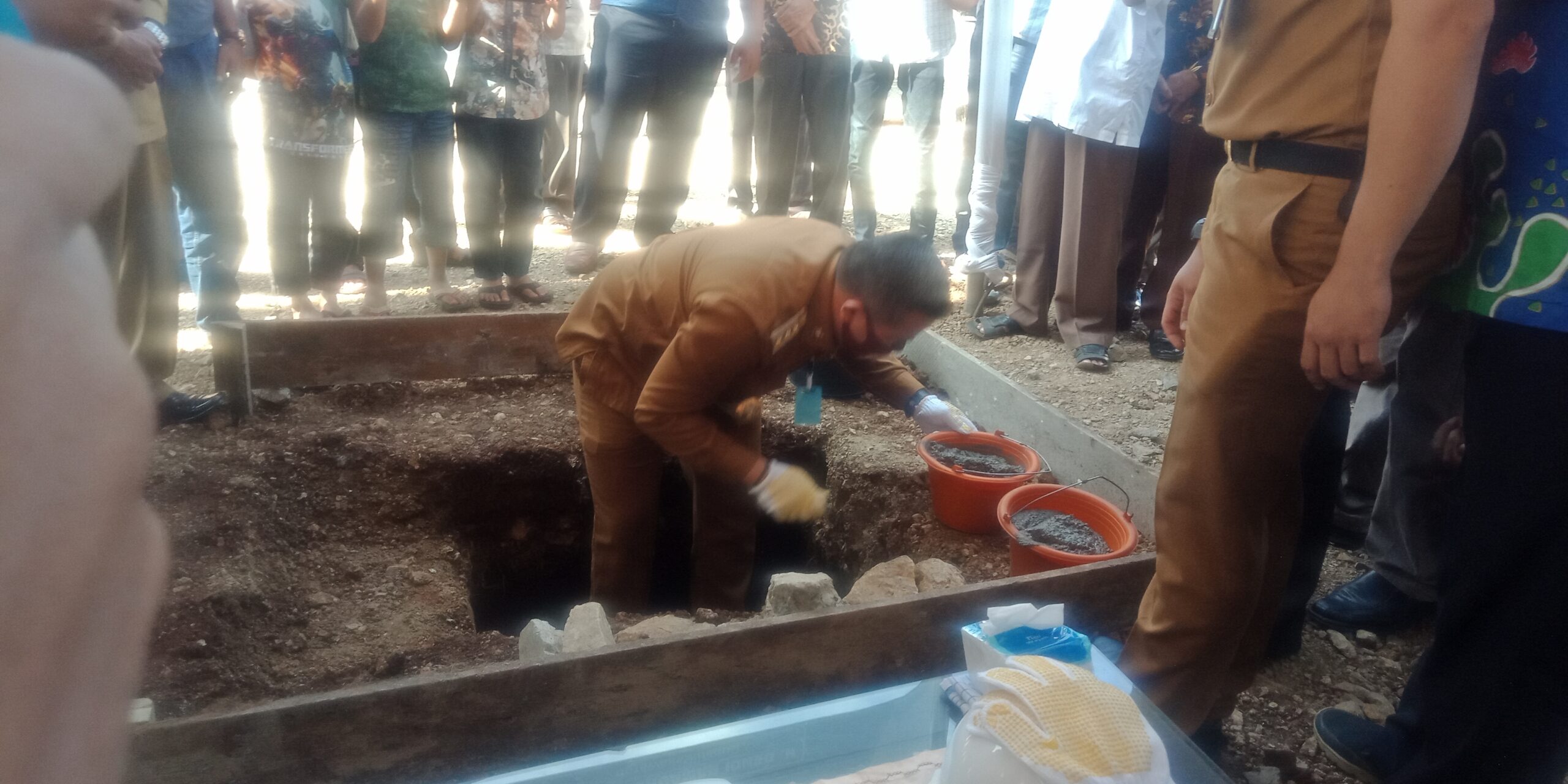 PESAWARAN-(PeNa), Bupati Pesawaran Dendi Ramadhona letakkan batu pertama pembangunan Gapura Muhamad Ali Kampus Institut Teknologi dan Bisnis Diniyyah Lampung (INSTIDLA) di Desa Negeri Sakti Kecamatan Gedong Tataan, Senin (27/07/2020).