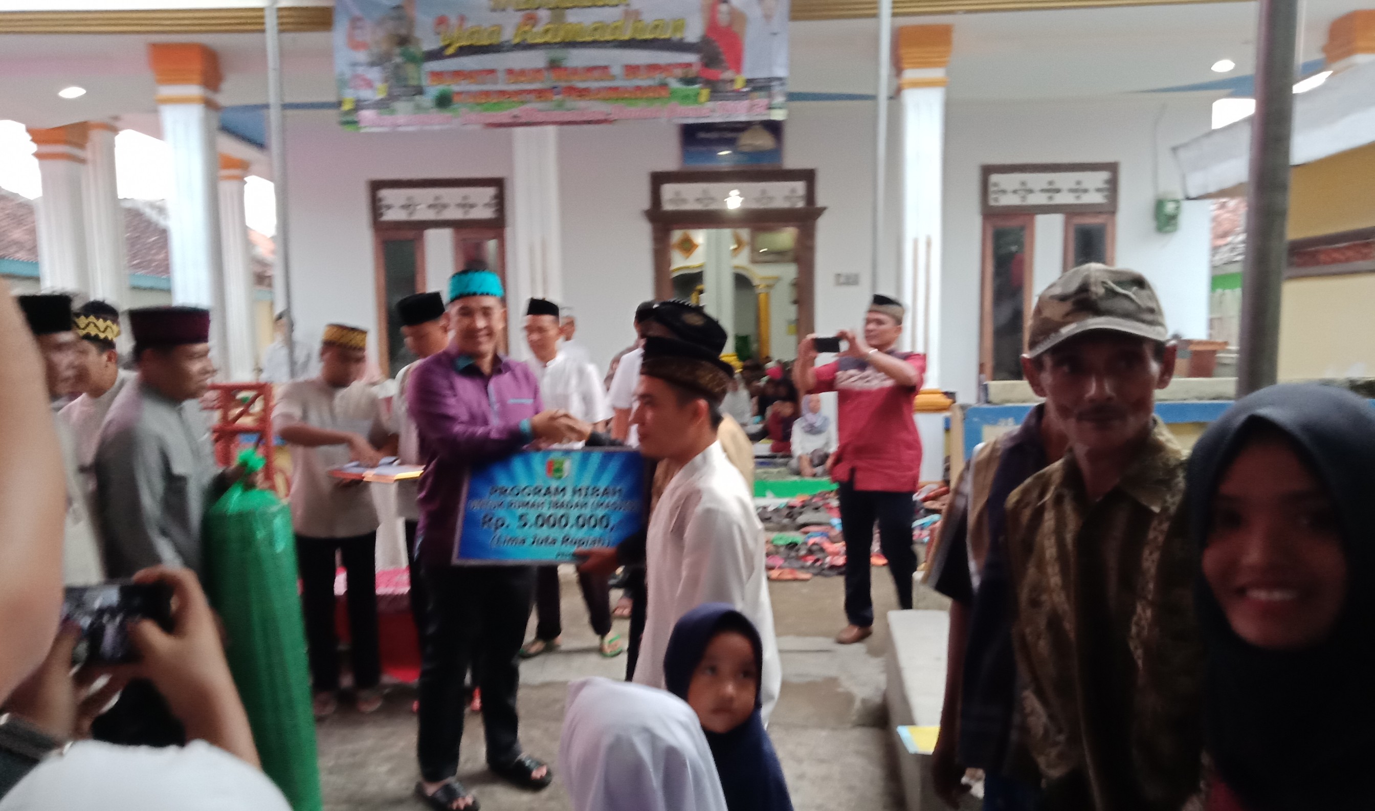 Pada kesempatan tersebut, Bupati Dendi Ramadhona juga membagikan santunan kepada 80 anak yatim dan 110 kaum dhuafa, penyerahan bedah rumah kepada dua orang warga Desa Sukajaya, Bantuan perlengkapan sholat, bantuan uang tunai kepada pengurus Masjid Darussalam.
