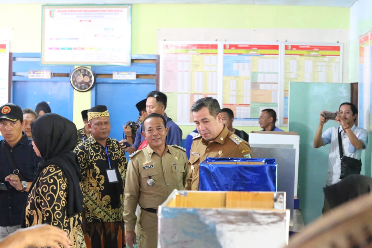 PESAWARAN-(PeNa), Bupati Pesawaran Dendi Ramadhona memantau secara langsung pelaksanaan pemilihan kepala desa (pilkades) serentak di wilayahnya, Senin (21/10/2019).