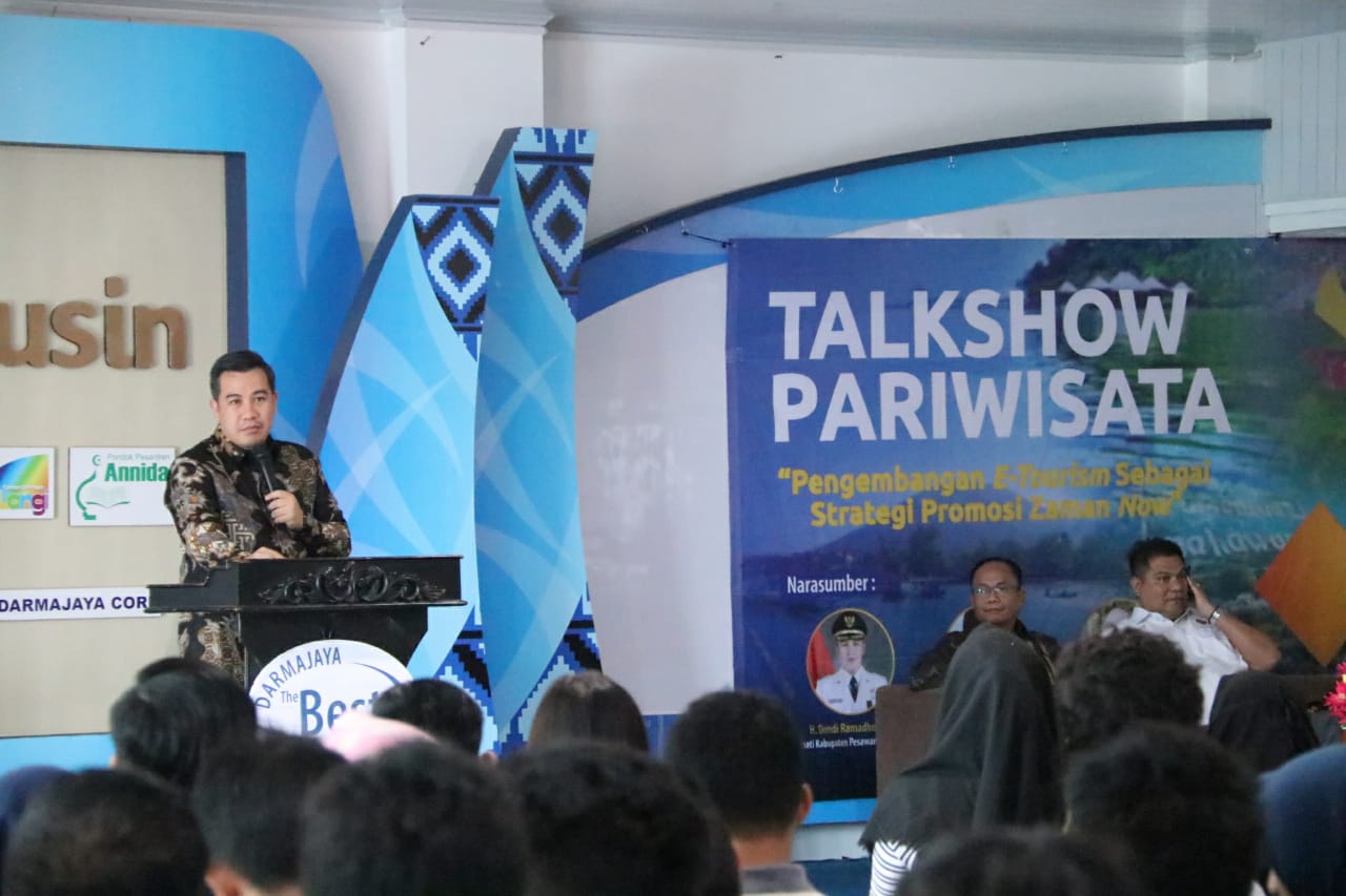 Hal tersebut disampaikan saat menjadi salah satu nara sumber pada kegiatan Talkshow Pariwisata di Aula Rektorat Gedung H. Alfian Husin IIB Darmajaya, Selasa (18/12).
