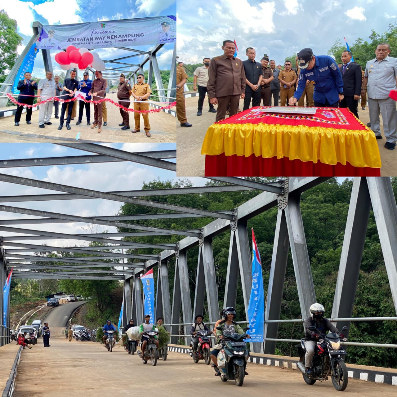 P E S A W A R A N -(PeNa), Ongkos angkut hasil pertanian jadi lebih murah karena akses transportasi jadi mudah, setelah Bupati Pesawaran Dendi Ramadhona resmikan Jembatan Way Sekampung Desa Pujo Rahayu – Lumbirejo Kecamatan Negeri Katon, Senin (25/11/2024).
