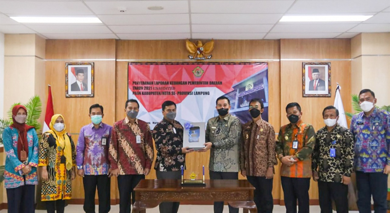 BANDARLAMPUNG – (PeNa), Bupati Pesawaran Dendi Ramadhona menyerahkan Laporan Keuangan Pemerintah Daerah (LKPD) tahun anggaran 2021 kepada Badan Pemeriksa Keuangan Republik Indonesia (BPK-RI) Perwakilan Lampung di Kota Bandarlampung, Jum’at (18/03/2022).