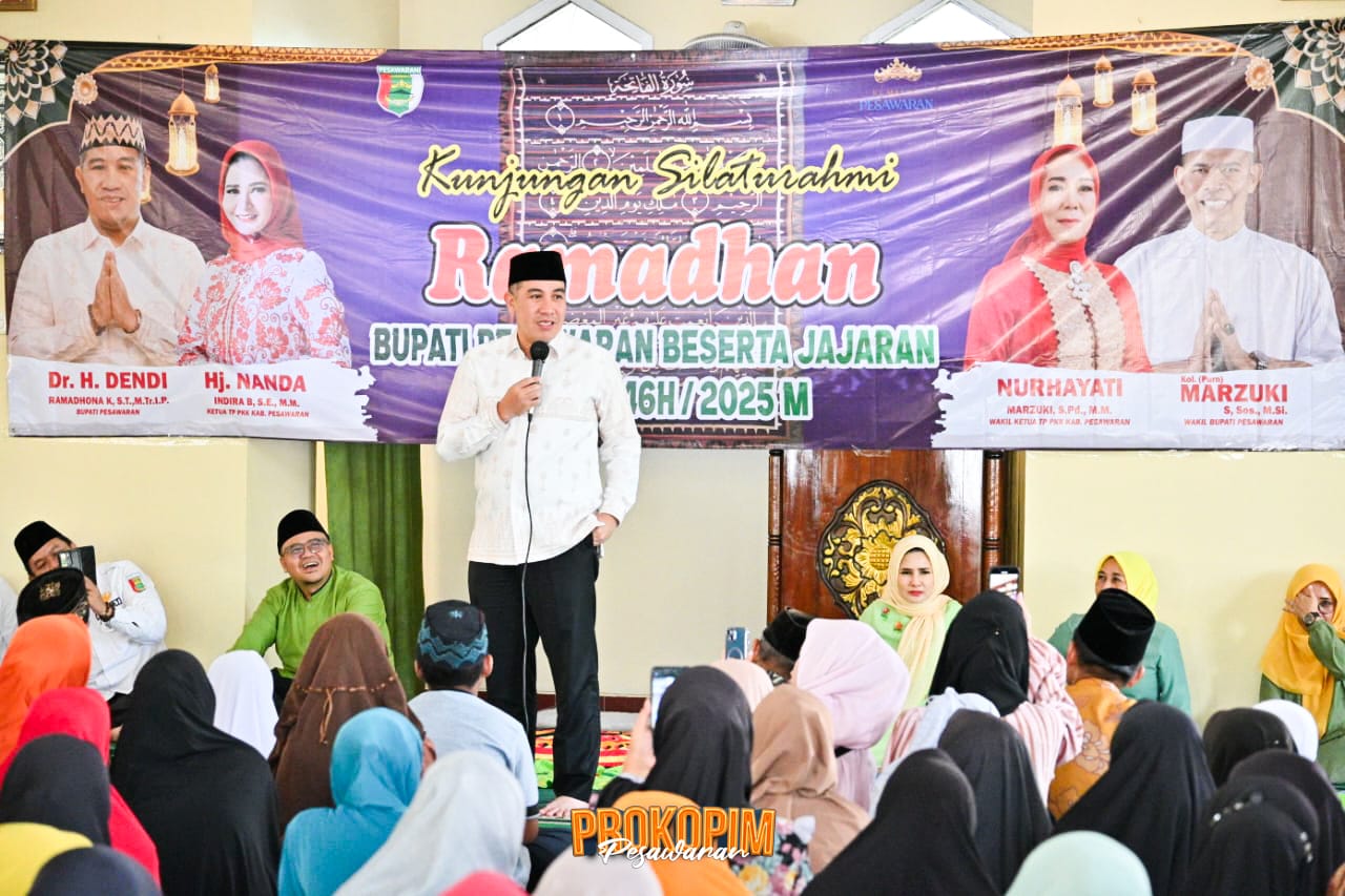 P E S A W A R A N -(PeNa), Bupati Pesawaran Dendi Ramadhona lakukan silaturahmi Ramadhan 1446H di Masjid Jami Al-Fallah, Desa Kedondong, Kecamatan Kedondong, pada Rabu (12/03/2025).