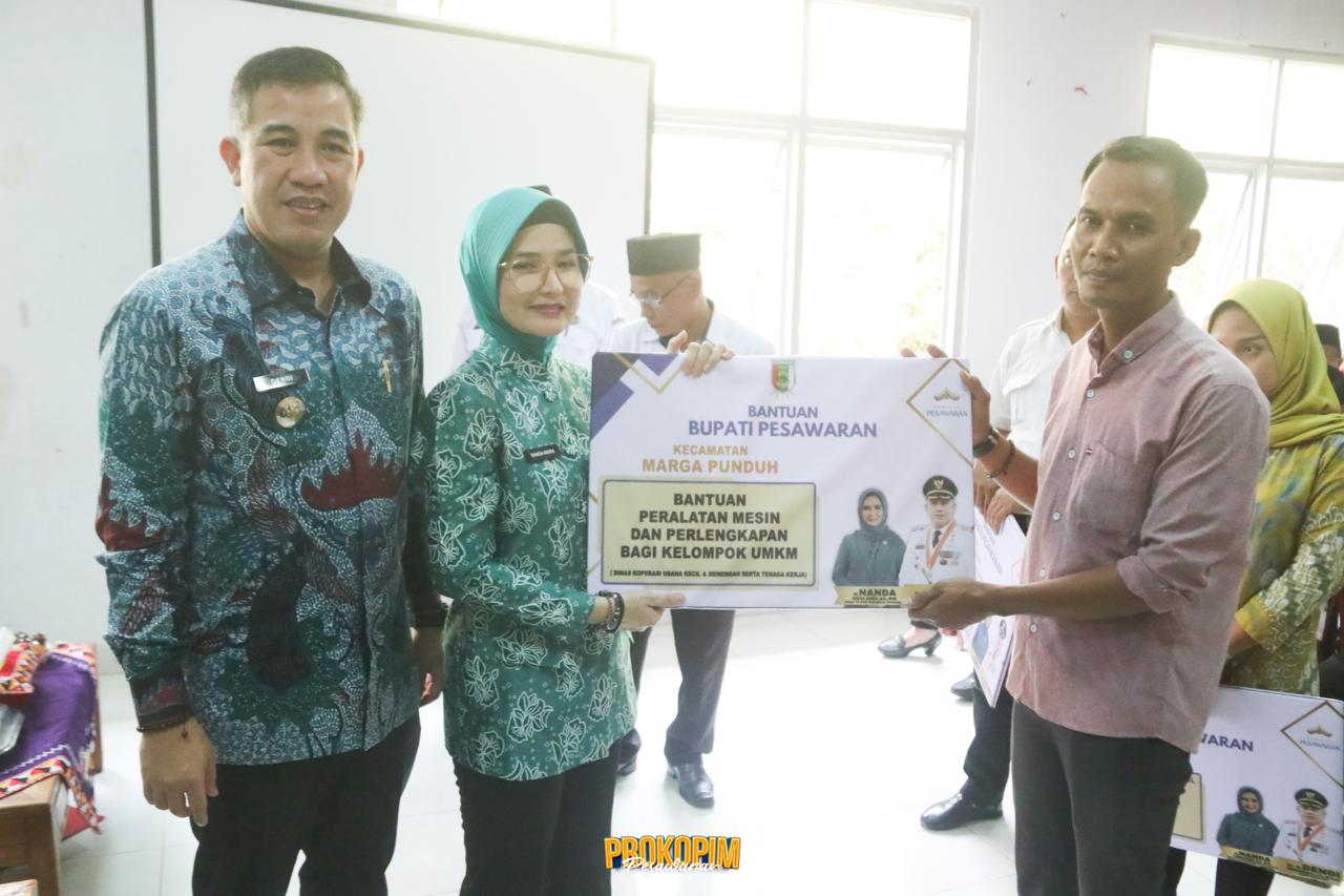 Pada kegiatan tersebut, Ketua TP-PKK Kabupaten Pesawaran Nanda Indira Dendi didampingi Bupati dan sejumlah jajarannya memberikan beberapa bantuan yang diantaranya adalah mesin peralatan dan kelengkapan untuk Usaha Mikro Kecil Menengah (UMKM).