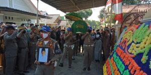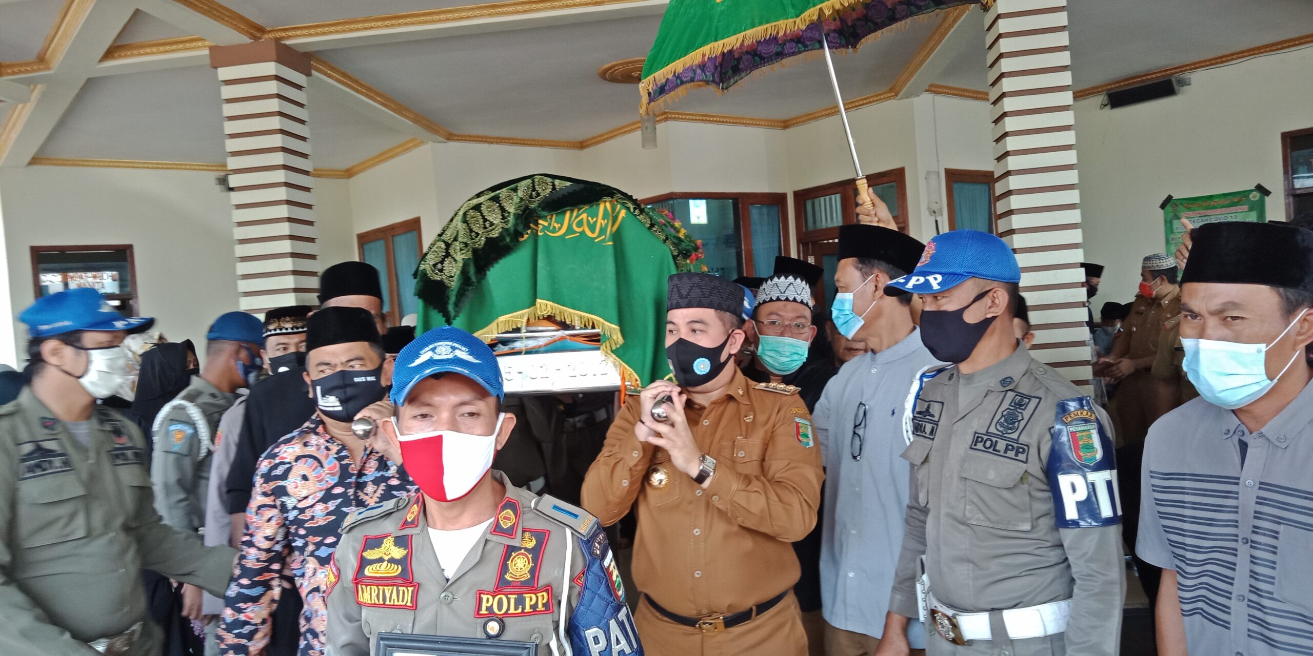 PESAWARAN-(PeNa), Bupati Pesawaran upacarakan jenazah almarhum Kepala Dinas Komunikasi dan Informasi (Diskominfo) Isroni Mihradi di kediamannya di Gang Sekata Desa Kurungan Nyawa Kecamatan Gedong Tataan, Senin (03/08/2020).