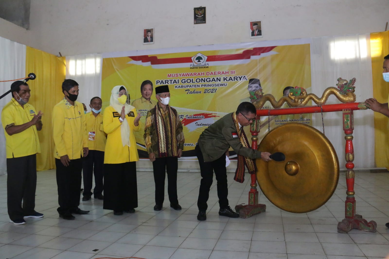PRIMGSEWU-(PeNa), Bupati Pringsewu Sujadi menghadiri Musyawarah Daerah (Musda) III DPD II Partai Golkar Kabupaten Pringsewu di GSG Kecamatan Sukoharjo, Kamis (07/01/2021).