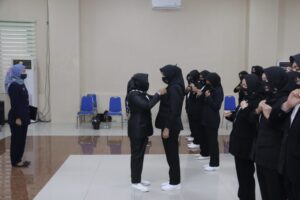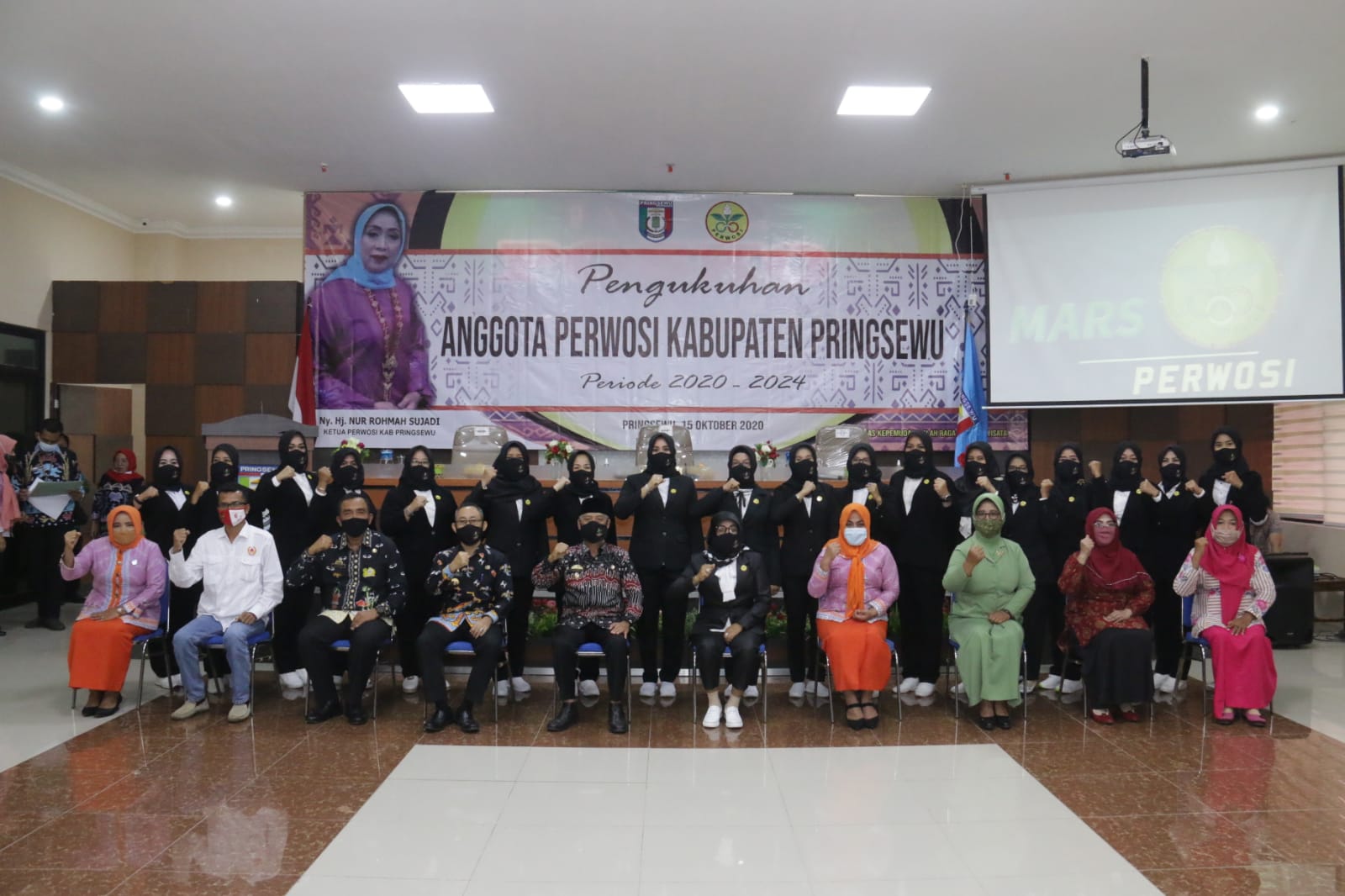 PRINGSEWU-(PeNa) Anggota Persatuan Wanita Olahraga Seluruh Indonesia (PERWOSI) Kabupaten Pringsewu 2020-2024 dikukuhkan oleh Ketua PERWOSI setempat Nurrohmah Sujadi di Aula Utama Pemkab Pringsewu, Kamis (15/10/2020).
