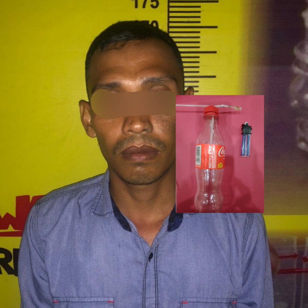 Dijelaskan,ketika penggrebekan dilakukan petugas mendapati tersangka tersebut sedang menggunakan narkotika jenis sabu dan ditemukan barang bukti seperangkat alat hisap sabu (bong).