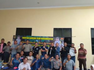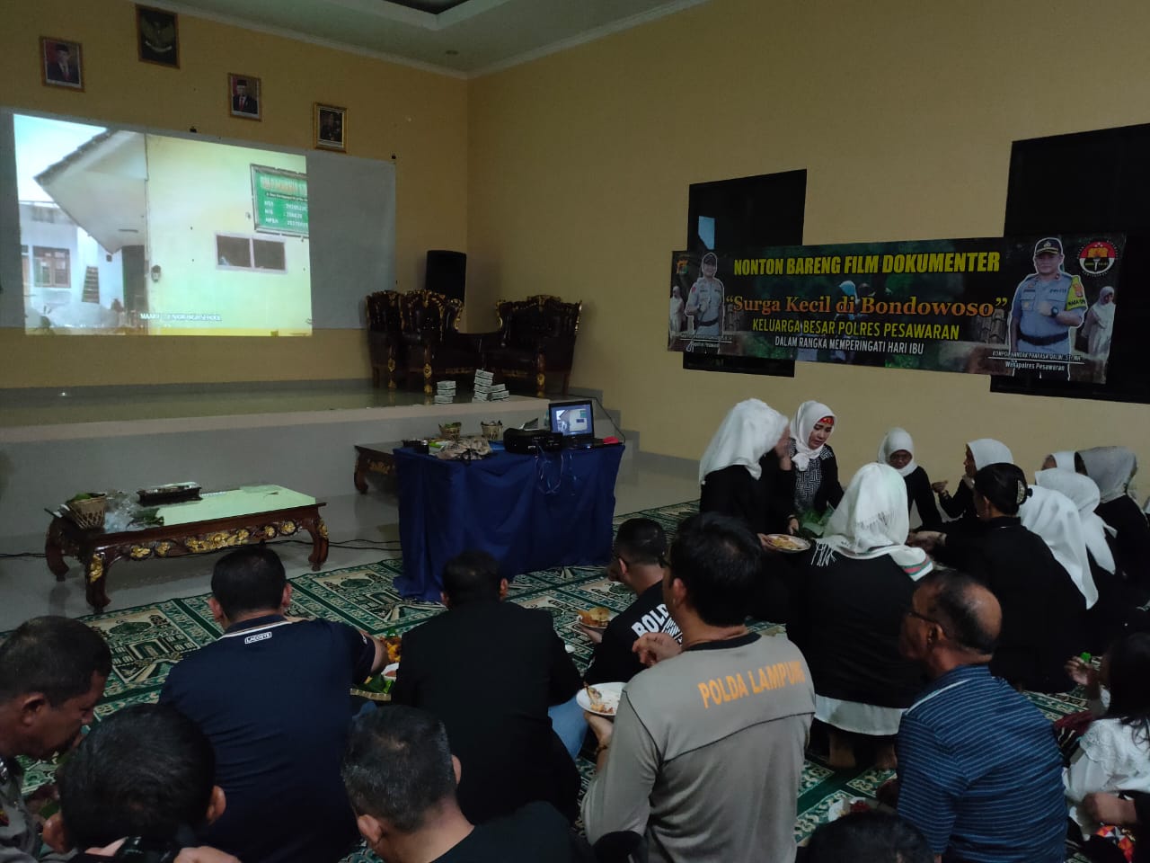 PESAWARAN-(PeNa), Ditonton seratusan orang, film cerita ‘Sorga Kecil Di Bondowoso’ diputar di Aula Sanika Satyawada Mapolres Pesawaran pada pukul 19.30 WIB, Selasa (17/12/2019).