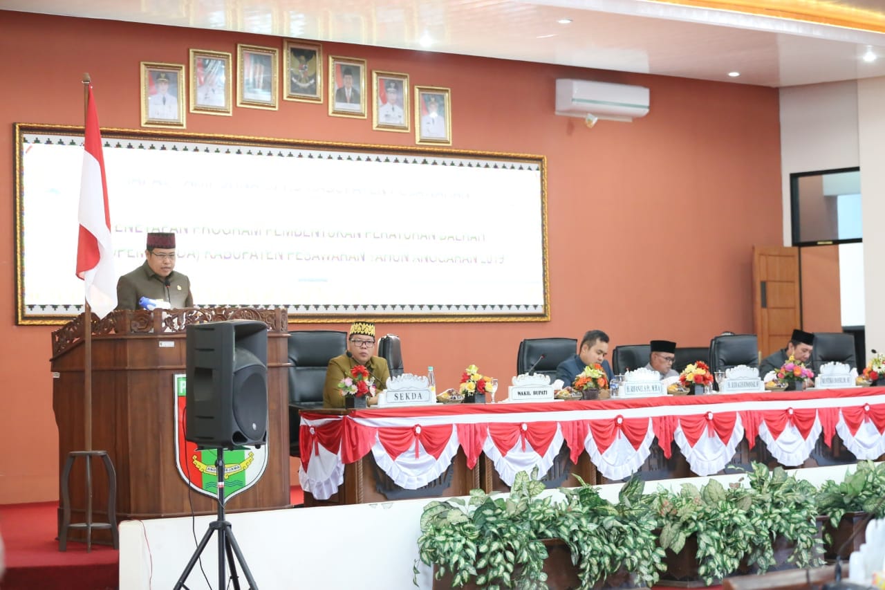 Paripurna DPRD Kabupaten Pesawaran tersebut dalam rangka penetapan Program Pembentukan Peraturan Daerah (PROPEMPERDA) Kabupaten Pesawaran Tahun Anggaran 2019.