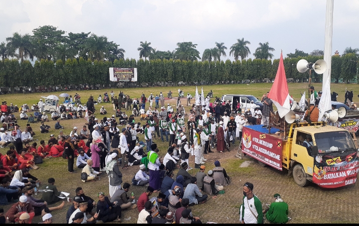 BANDARLAMPUNG (PeNa) – Ada yang menarik dalam aksi massa dari forum suara masyarakat Lampung yang melakukan aksi demo di lapangan kantor Gubernur Lampung, menolak RUU Haluan Idologi Pancasila (HIP), Jumat (26/6).