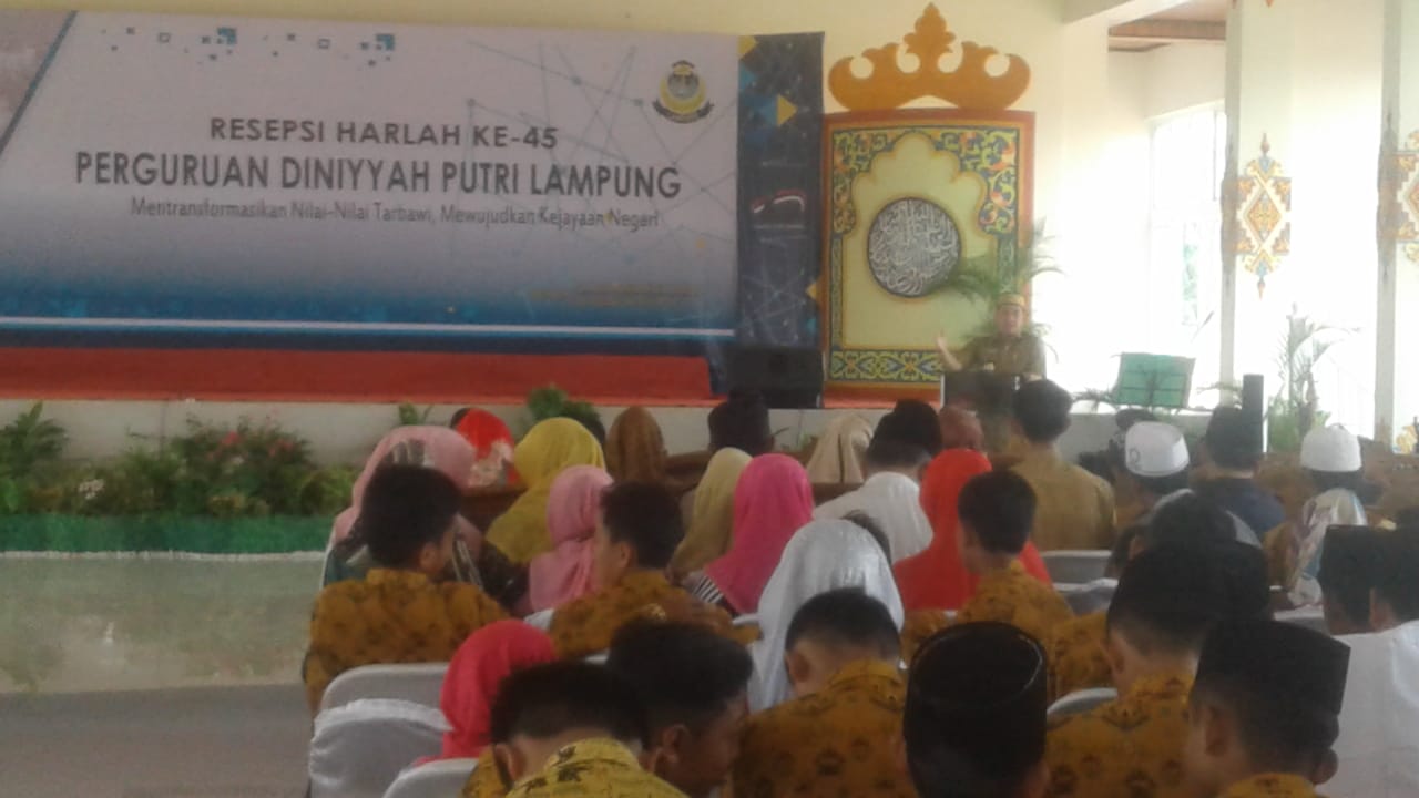 Sambutan juga disampaikan Gubernur Lampung M. Ridho Ficardo yang diwakili Karo Kesosmas Setdaprov Lampung Ratna Dewi bahwa, Diniyyah Putri merupakan salah satu perguruan yang syarat pengalaman dalam memberikan ilmu pelajaran terhadap muridnya.