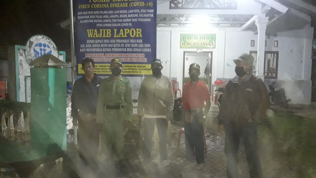 Selama 24 jam,mereka berjaga guna melakukan penyemprotan kepada siapapun yang melintas dan masuk ke Desa Sungailangka. Kemudian, siang harinya dilakukan penyemprotan cairan disinfektan dilingkungan dan tempat tinggal masyarakatnya. Terpantau, botol berisikan antiseptik dan tempat air lengkap dengan sabun juga terpapar dibeberapa tempatĀ seperti di Balai Desa serta Masjid dan Mushalla.