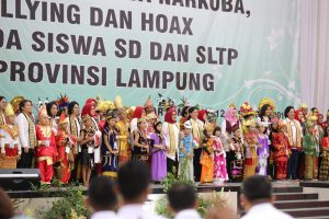 Dalam lawatannya, Iriana Joko Widodo bersama Mufidah Jusuf Kalla dan rombongan di Provinsi Lampung menyempatkan hadir pada giat Pengucapan Ikrar Kebulatan Tekad Pelajar Indonesia juga sekaligus dilakukan sosialisasi bahaya narkoba, bulliying dan hoax kepada siswa SD dan SLTP Provinsi Lampung yang dipusatkan di Kabupaten Pesawaran.