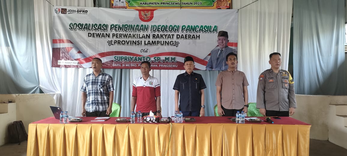 PeNa– Kegiatan sosialisasi pembinaan ideologi pancasila kembali di laksanakan oleh masing – masing wakil rakyat DPRD Provinsi Lampung di daerah pemilihan nya, salah satunya Supriyanto yang menggelar kegiatan tersebut pada hari Sabtu, 11 Maret 2023.