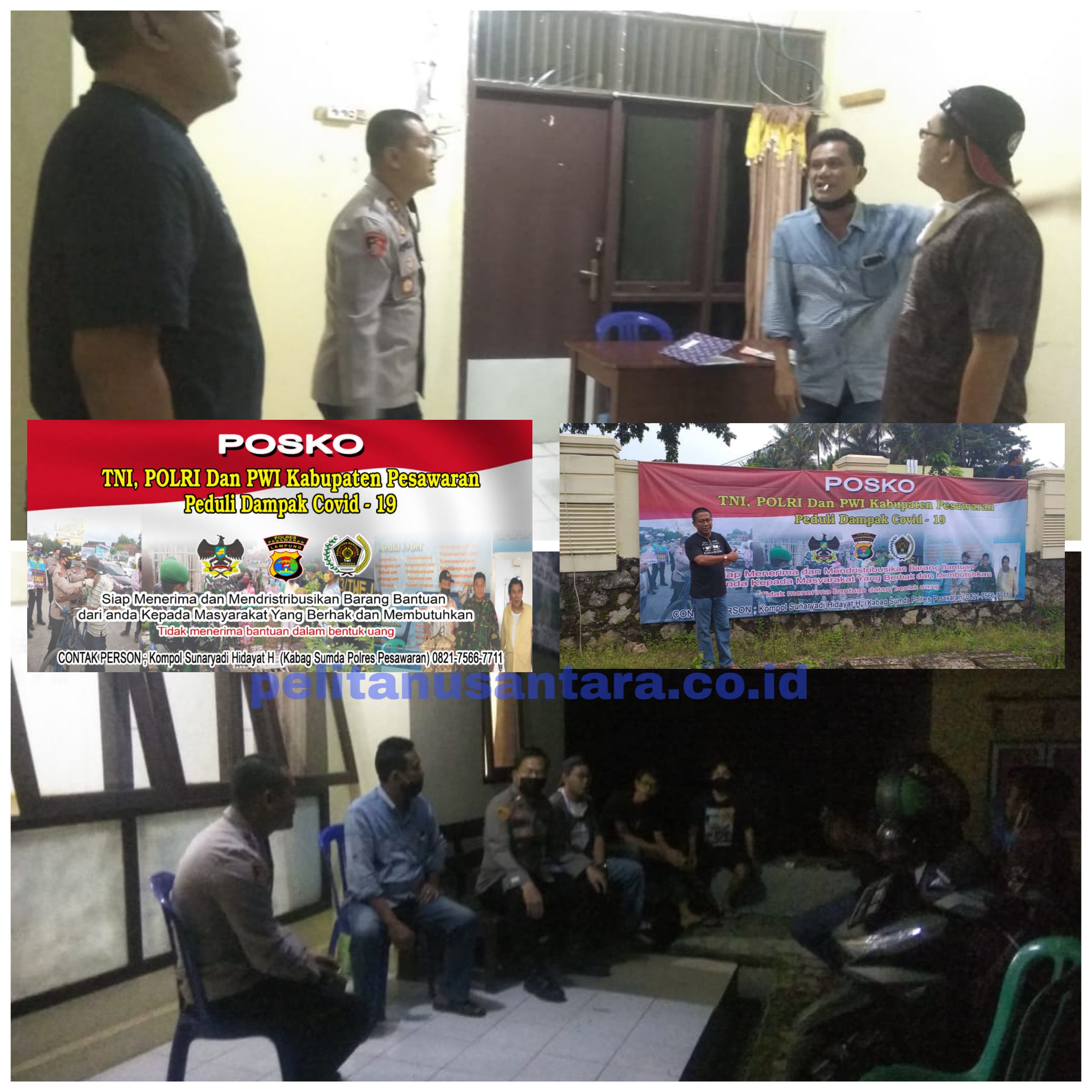 PESAWARAN-(PeNa), Posko TNI,Polri dan PWI Kabupaten Pesawaran peduli dampak covid-19 ditinjau Kapolres Pesawaran AKBP Popon Ardianto Sunggoro dan jajaran sekitar pukul 00.30WIB Jum’at (01/05/2020) dinihari.
